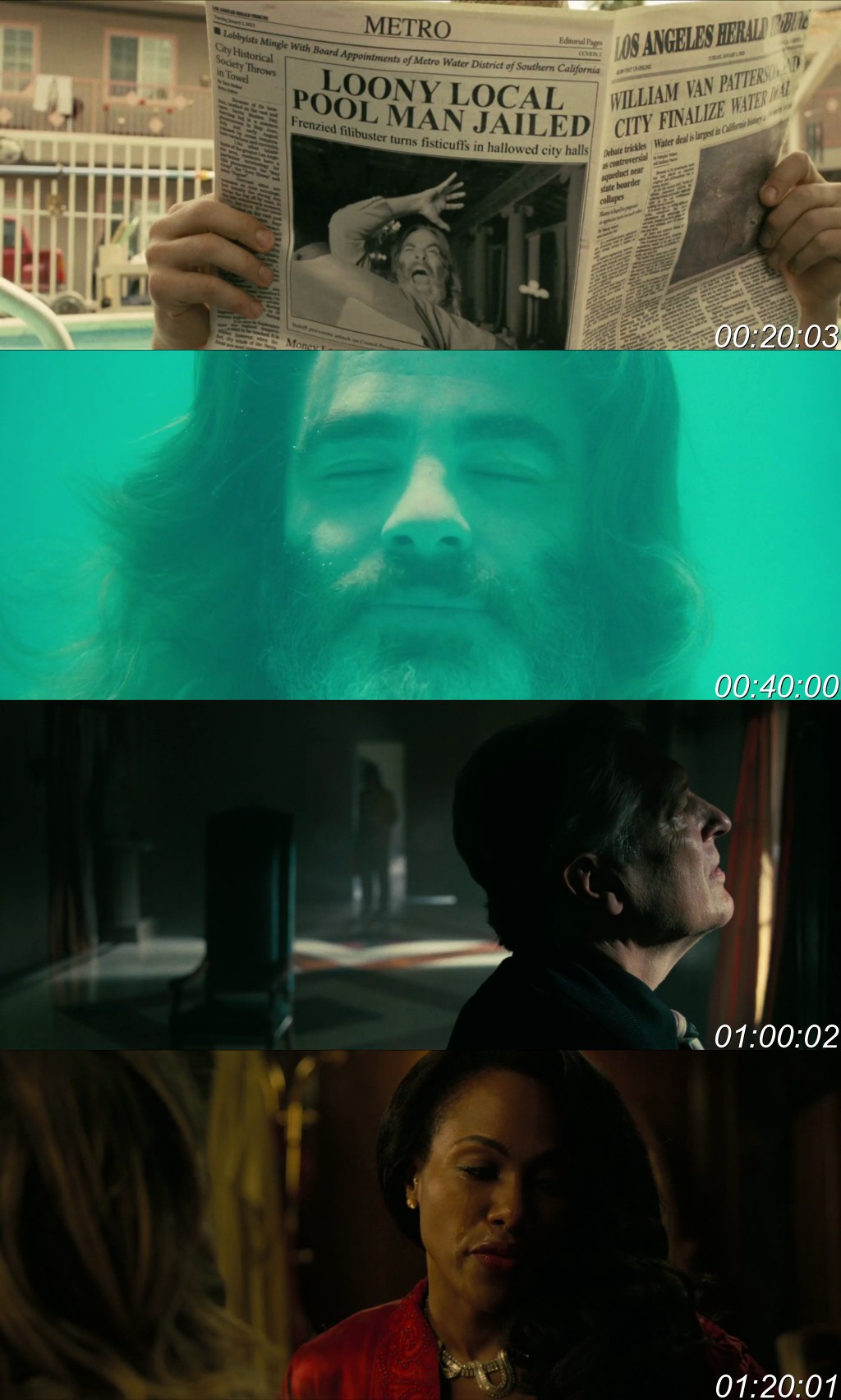Movie Plot: In Chris Pine’s feature directorial debut, Poolman tells the story of Darren Barrenman (Pine), a native Angeleno who spends his days looking after the pool of the Tahitian Tiki apartment block and fighting to make his hometown a better place to live. When he is tasked by a femme fatale to uncover the truth behind a shady business deal, Darren enlists the help of friends to take on a corrupt politician and a greedy land developer. His investigation reveals a hidden truth about his beloved city and himself. The film also stars Annette Bening, Danny DeVito, Jennifer Jason Leigh, DeWanda Wise, Stephen Tobolowsky, John Ortiz, and Ray Wise.